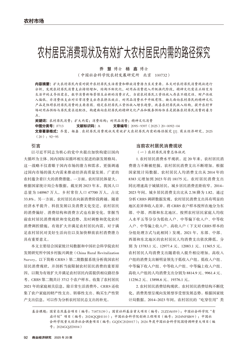 | 农村居民消费现状及有效扩大农村居民内需的路径探究 |