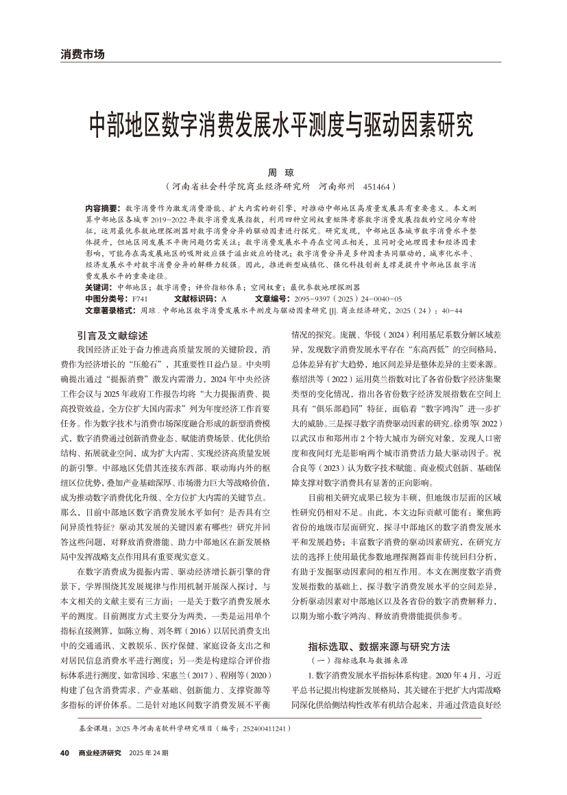 | 中部地区数字消费发展水平测度与驱动因素研究 |