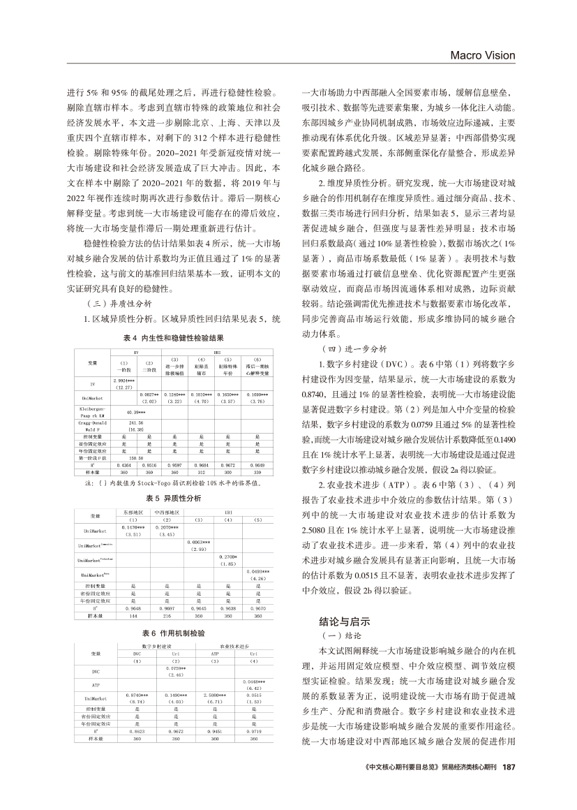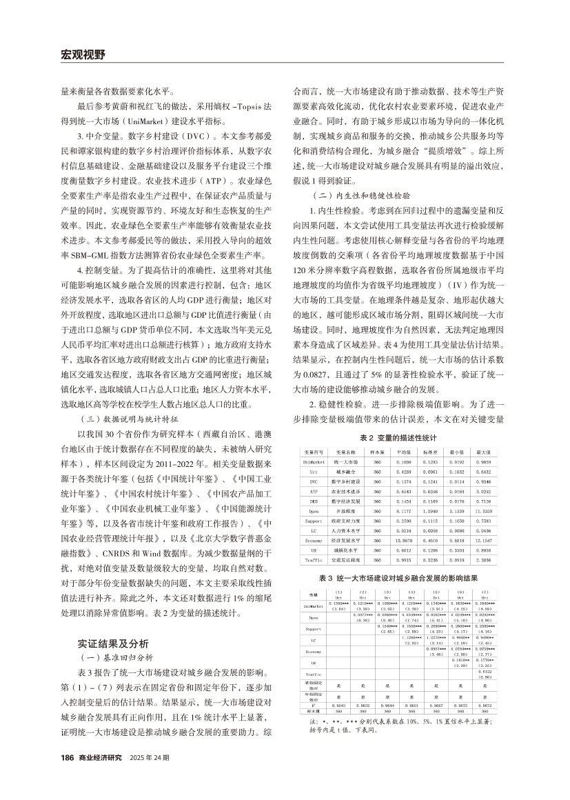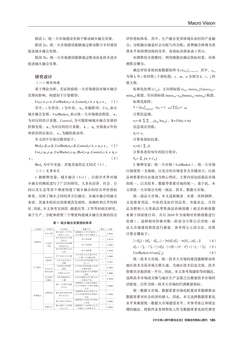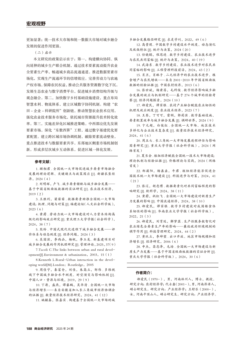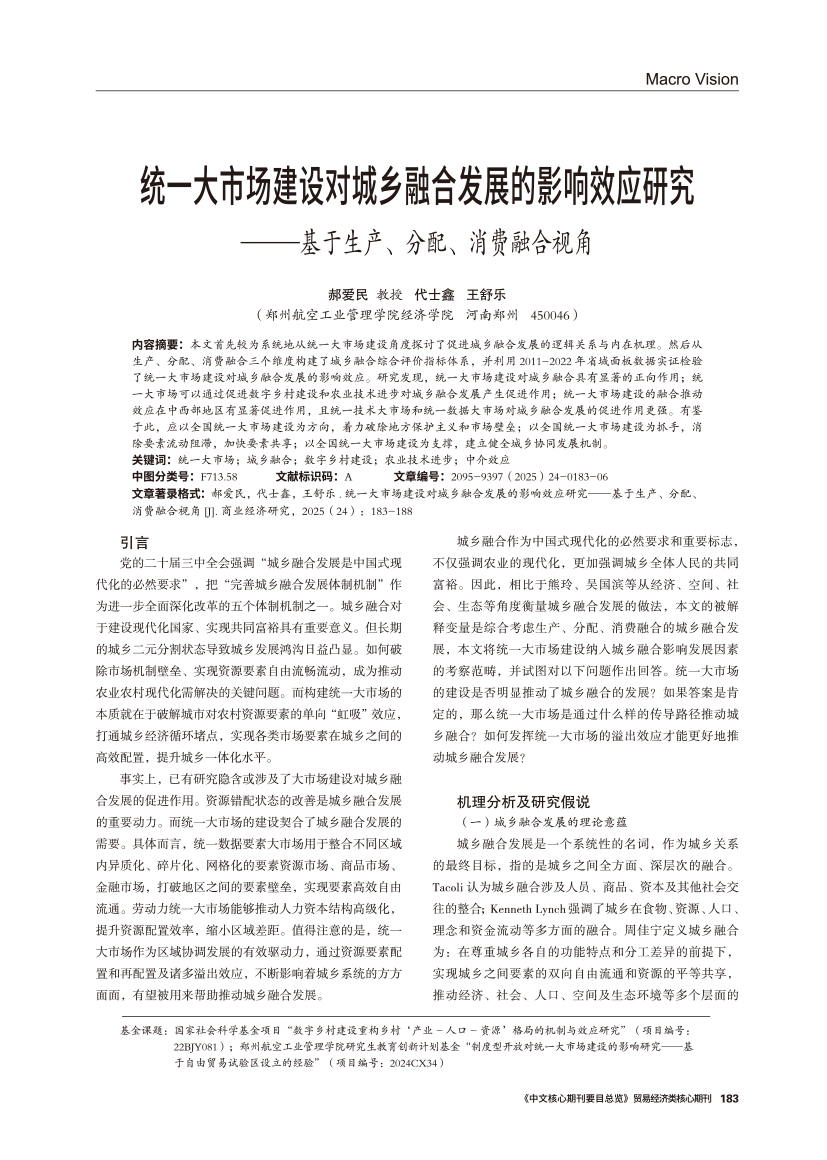 | 统一大市场建设对城乡融合发展的影响效应研究 ——基于生产、分配、消费融合视角 |