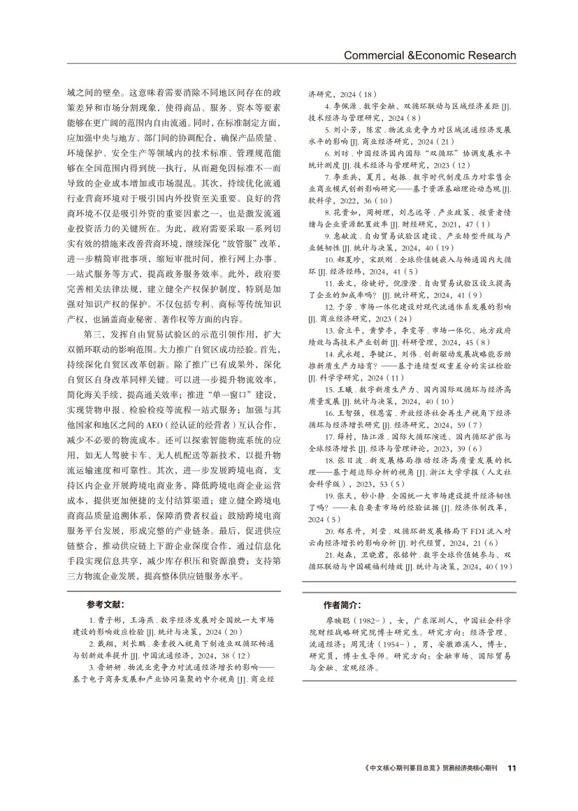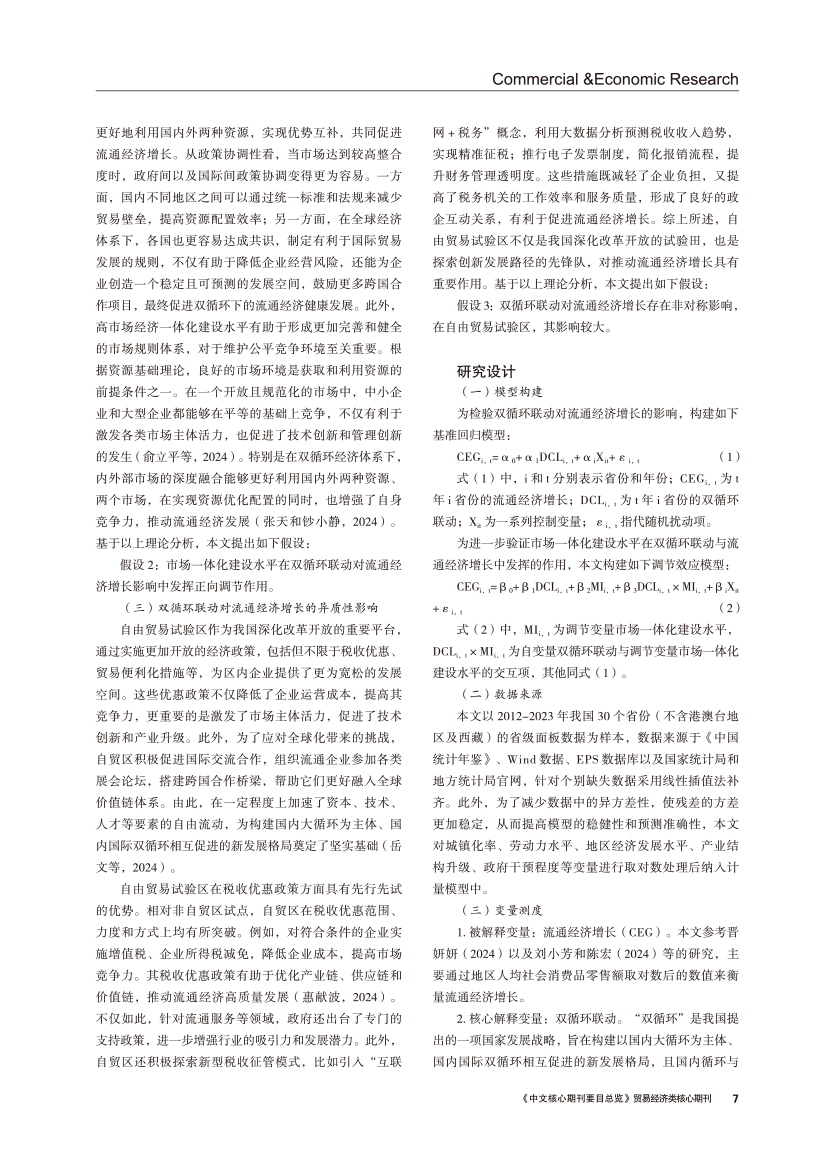 | 市场一体化背景下双循环联动对流通经济增长的影响 |