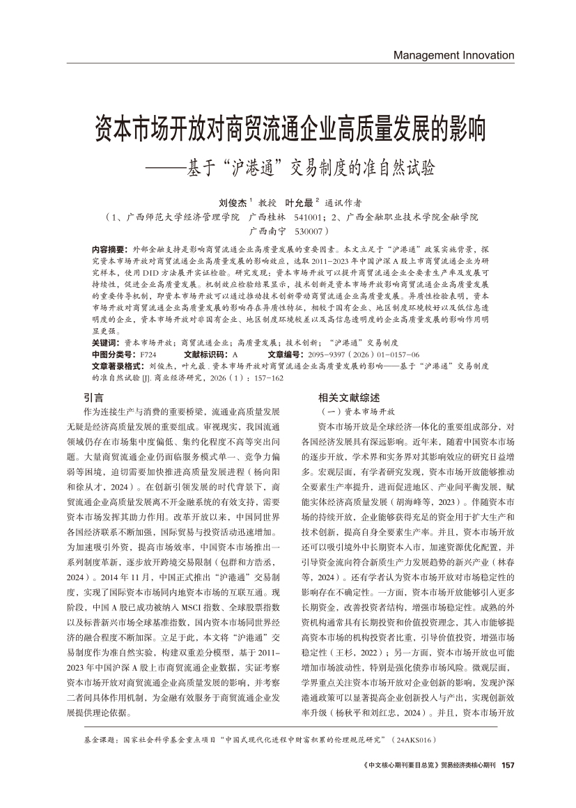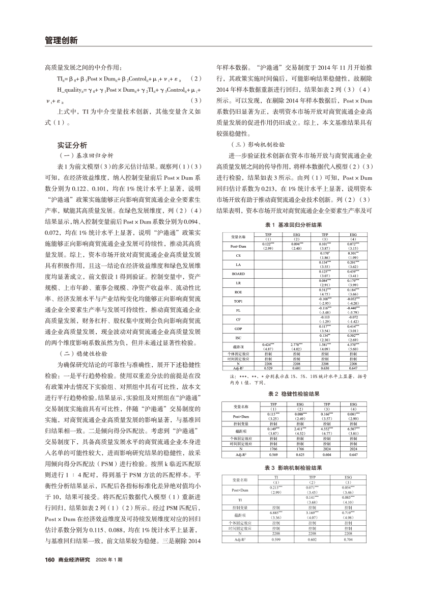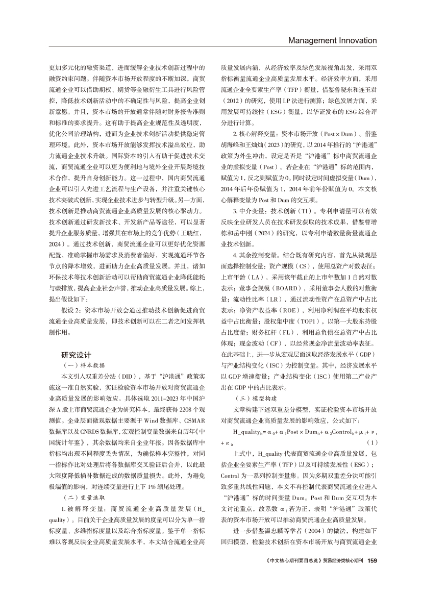 | 资本市场开放对商贸流通企业高质量发展的影响 ——基于“沪港通”交易制度的准自然试验 |