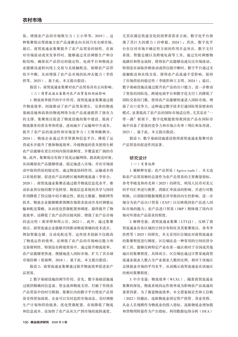 | 商贸流通业集聚对农产品贸易发展的促进效应分析 |