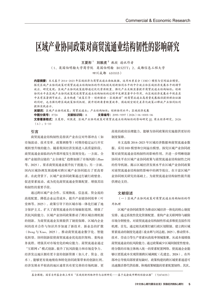 | 区域产业协同政策对商贸流通业结构韧性的影响研究 |
