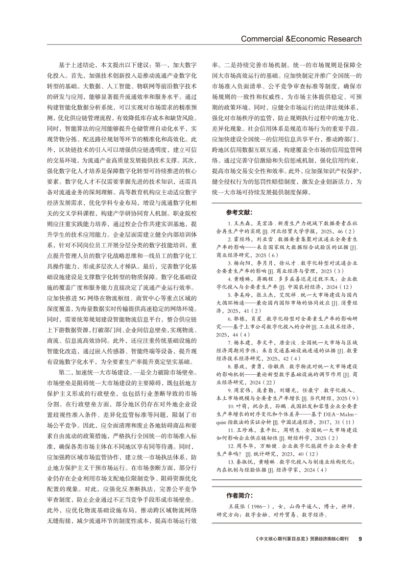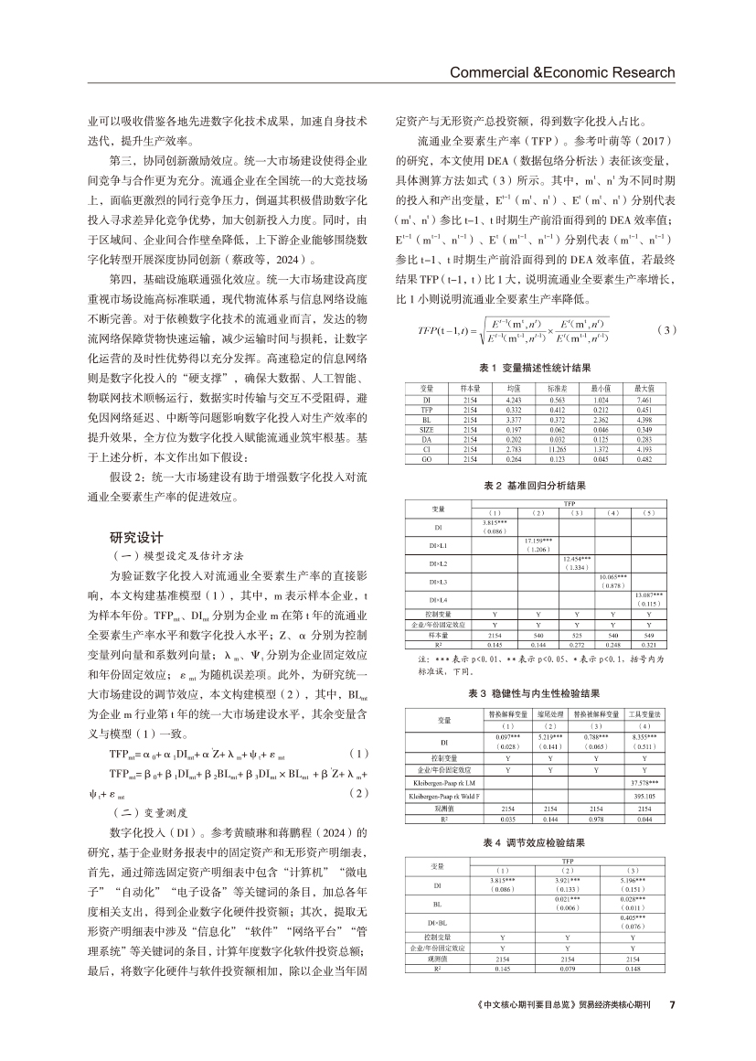 | 数字化投入对流通业全要素生产率增长的影响 ——统一大市场建设的调节作用 |