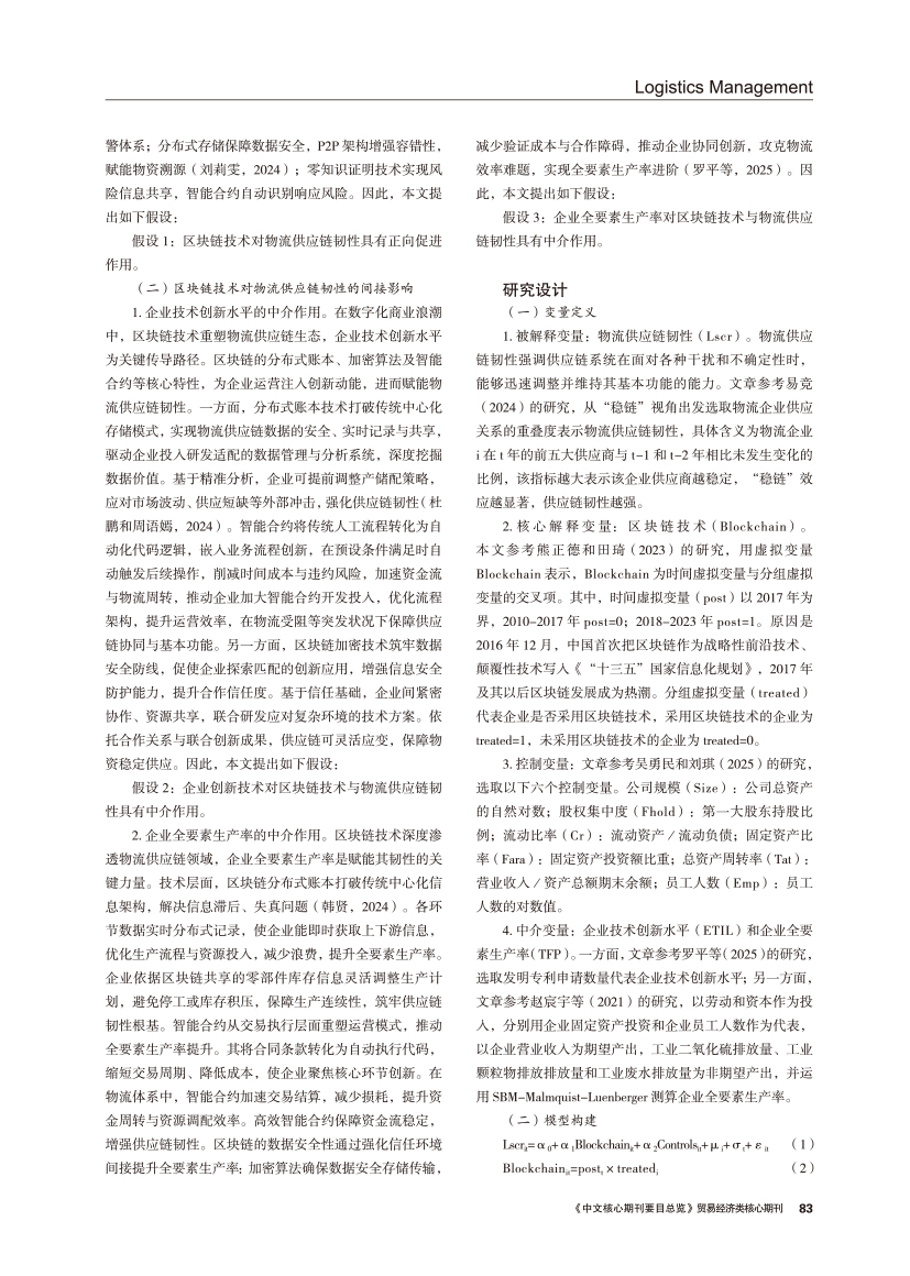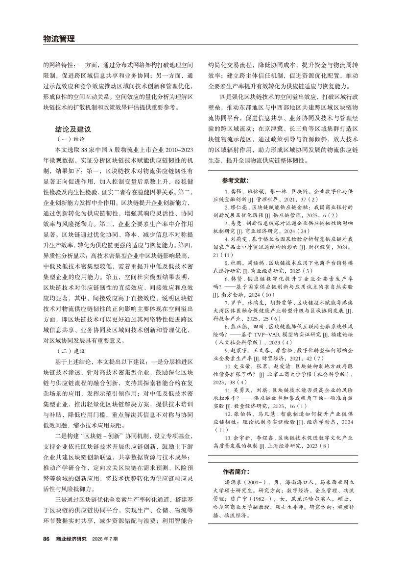 | 区块链技术赋能物流供应链韧性:理论机制、实证检验与提升路径 |