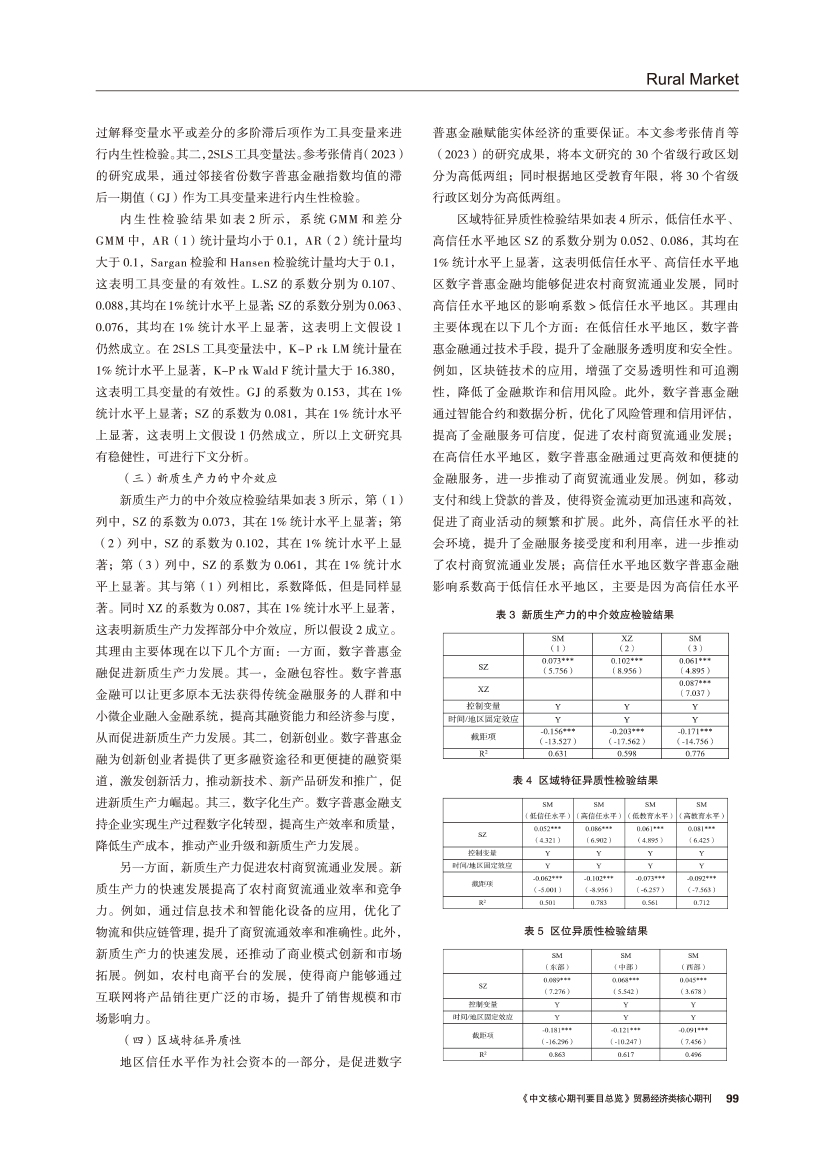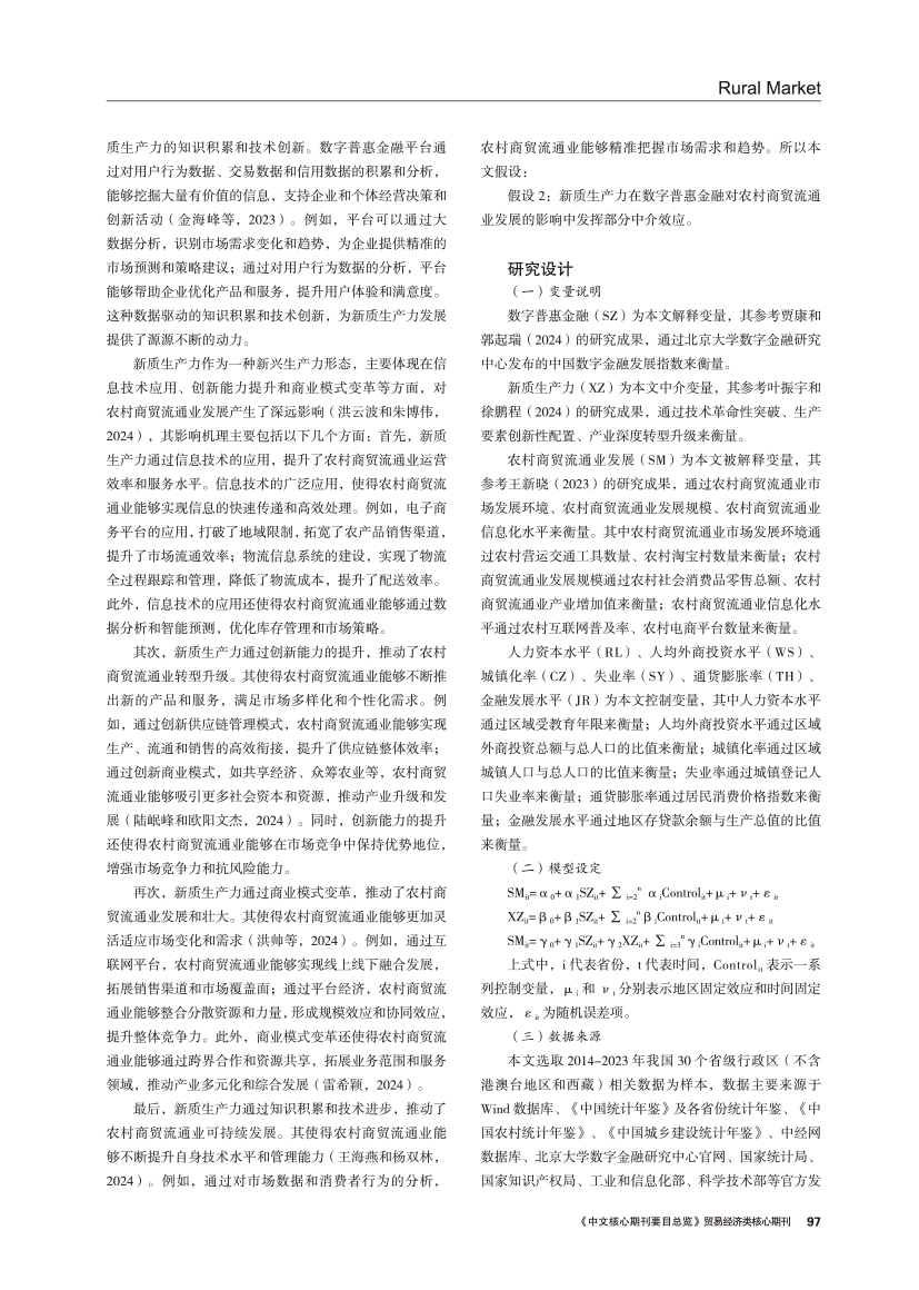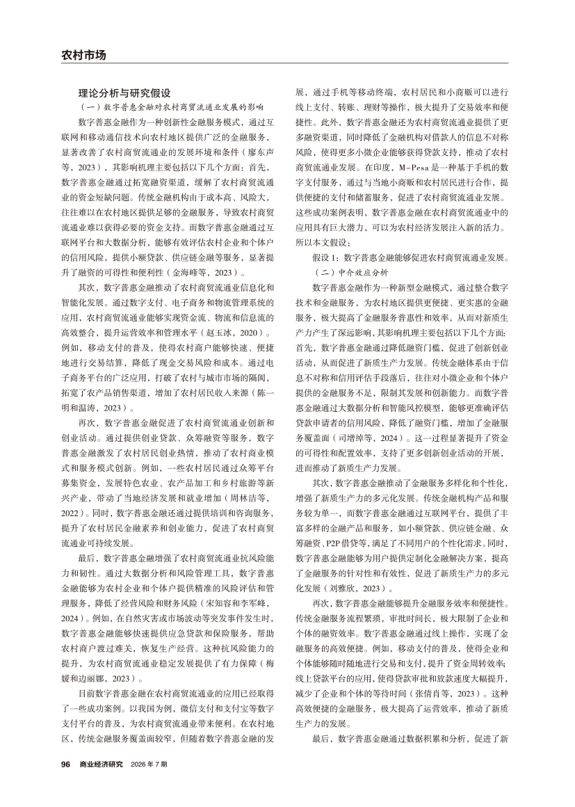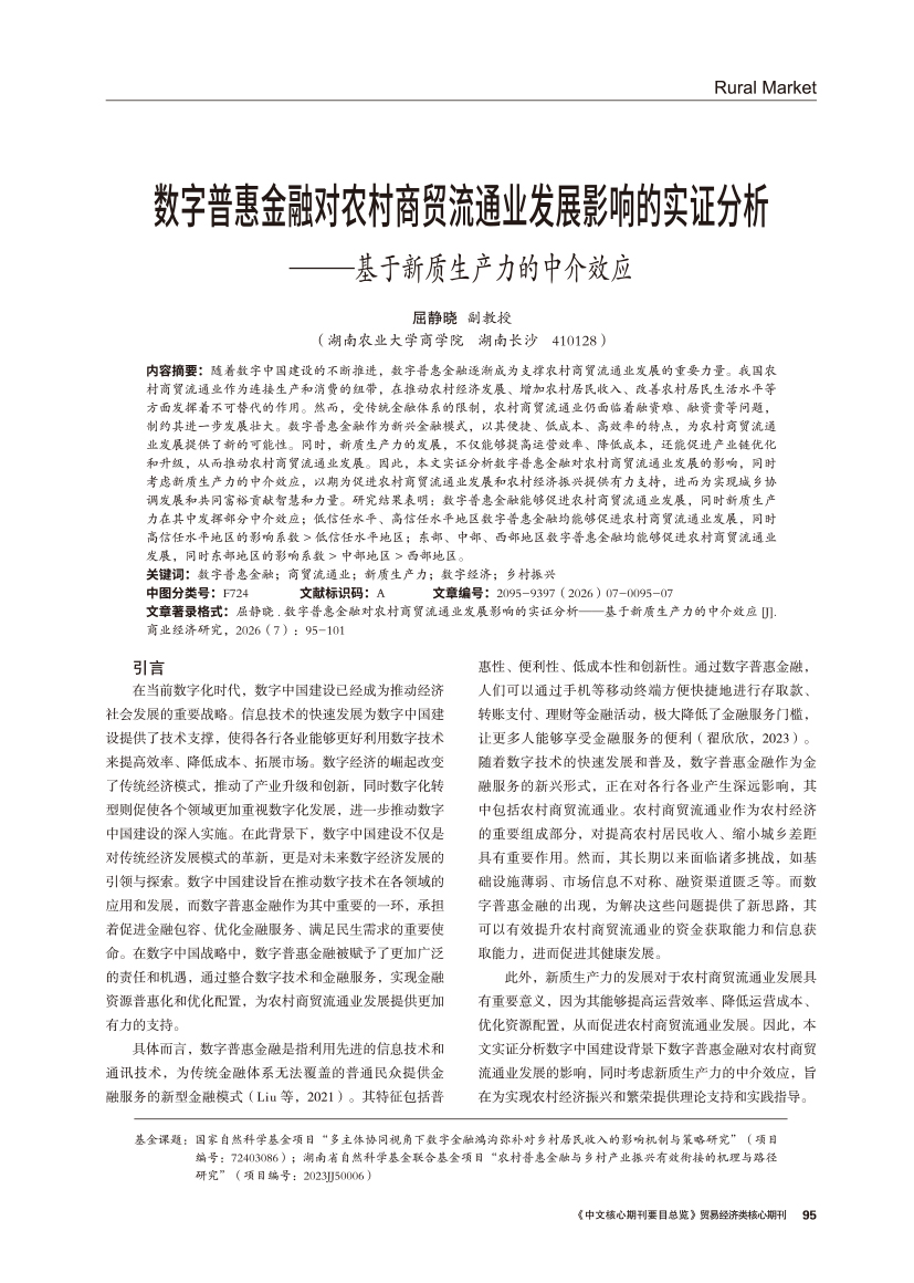 | 数字普惠金融对农村商贸流通业发展影响的实证分析 ——基于新质生产力的中介效应 |