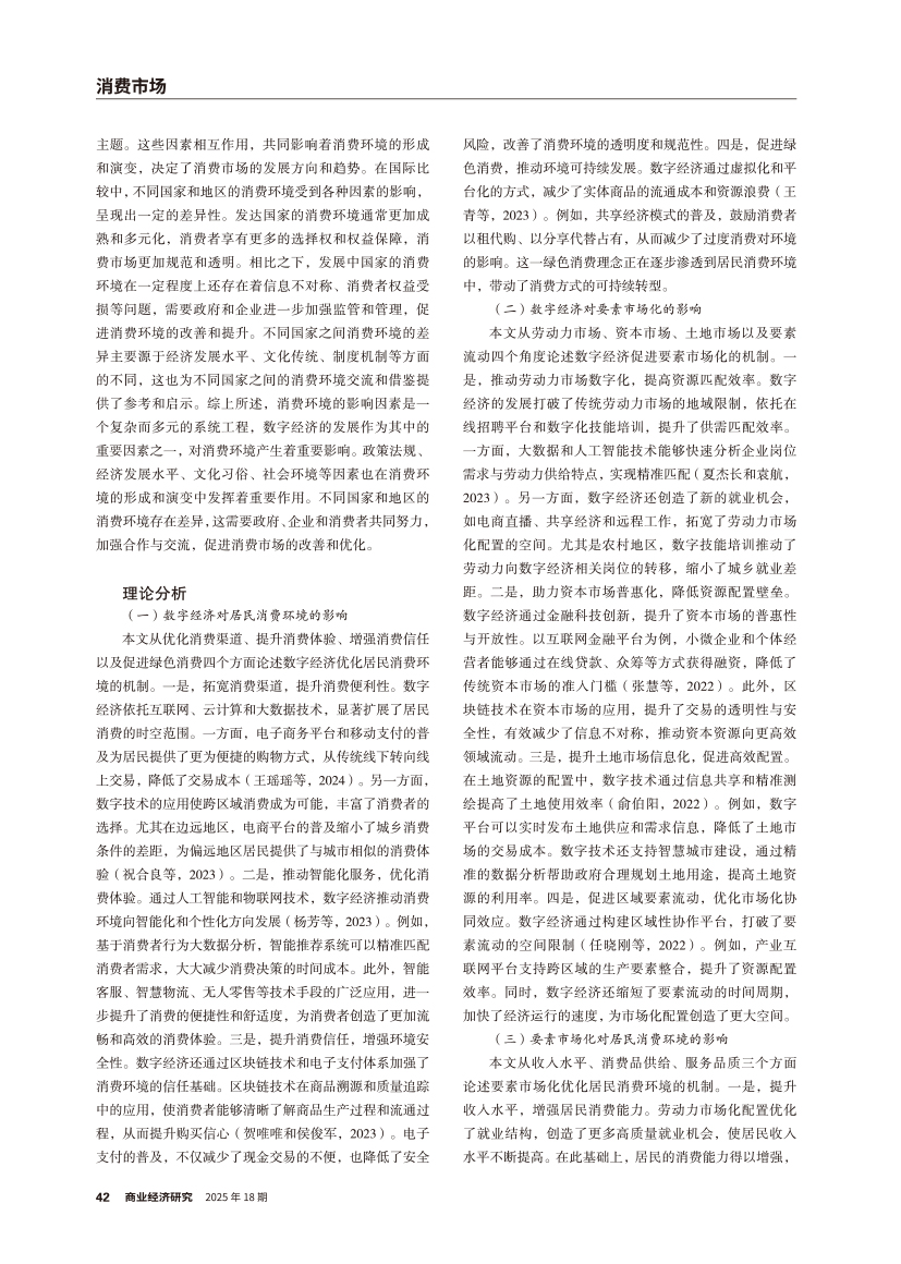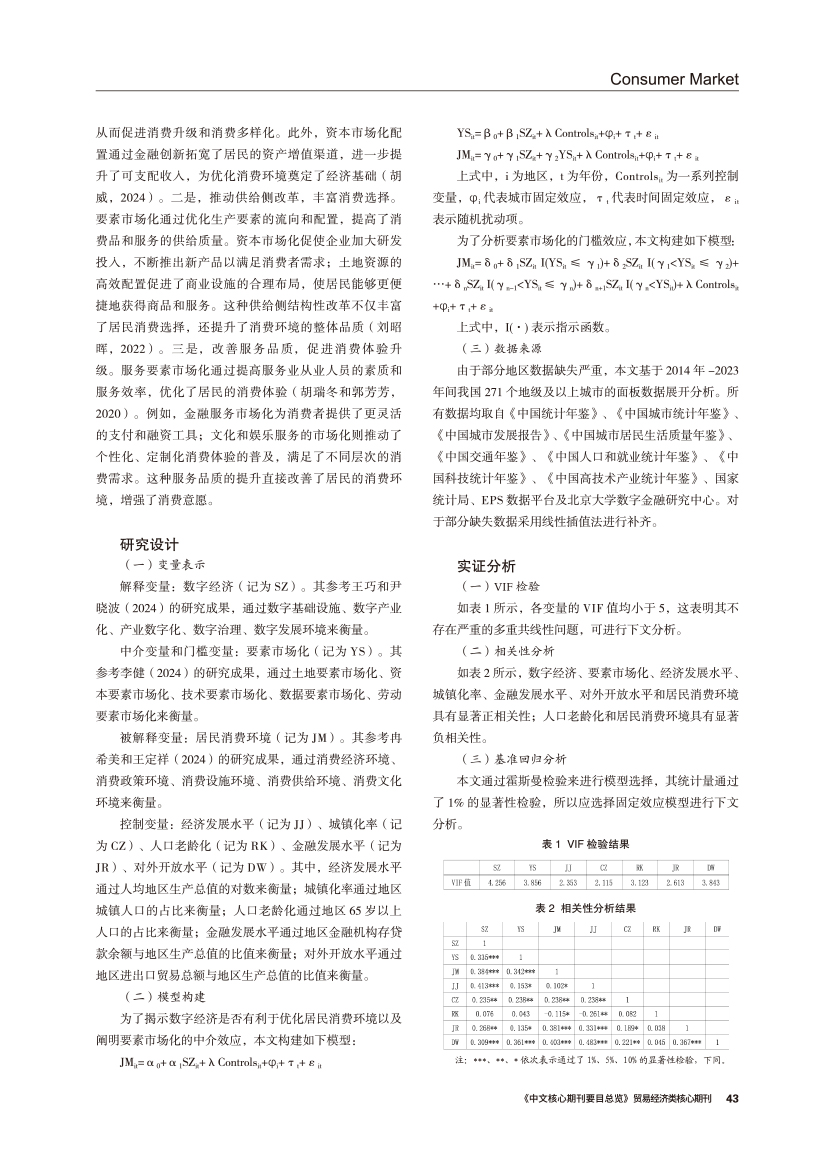 数字经济能否优化居民消费环境? ——基于要素市场化的中介效应和门槛效应 |