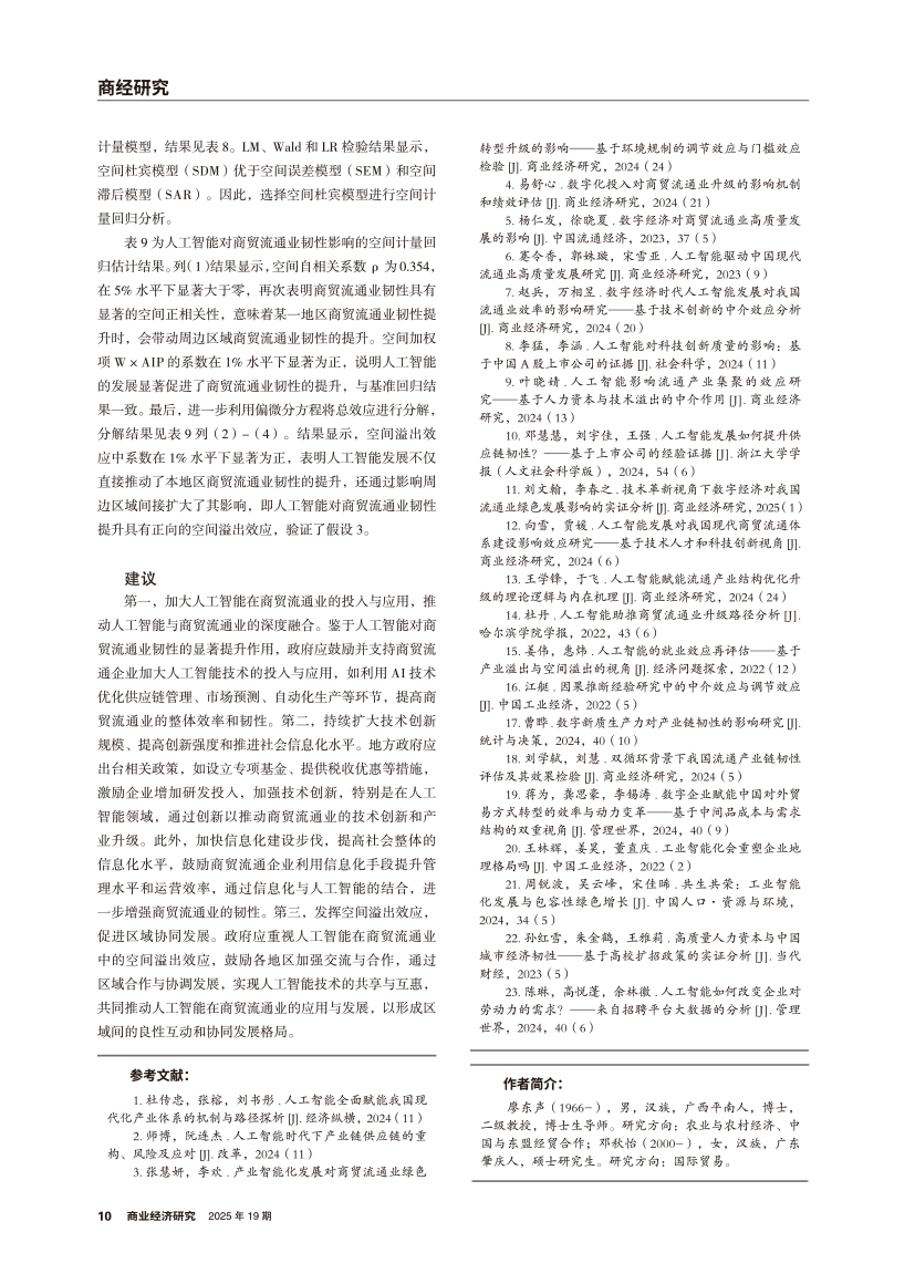 人工智能对商贸流通业韧性的影响机制与空间溢出效应研究 |