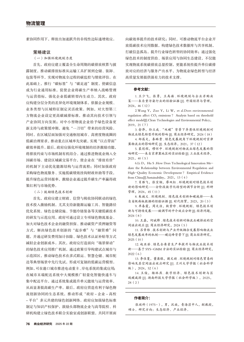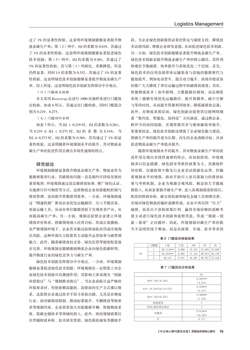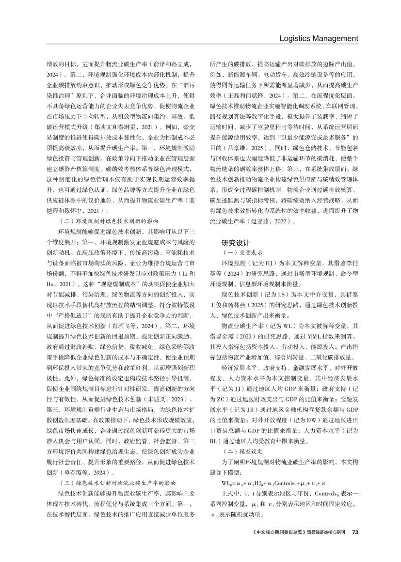 | 绿色技术创新视角下环境规制对物流业碳生产率的影响 |