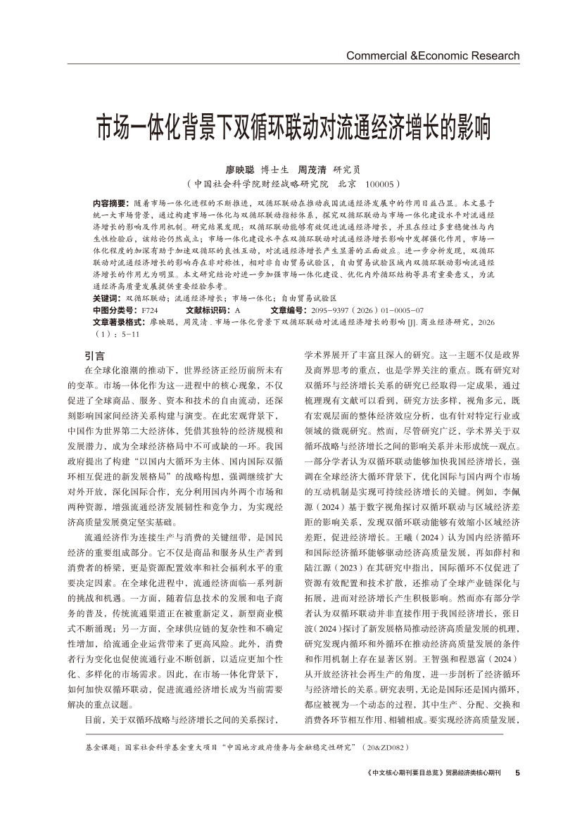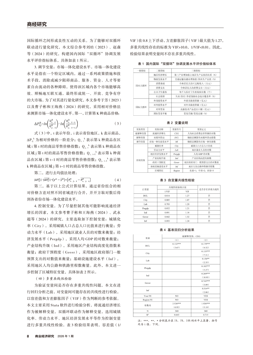 | 市场一体化背景下双循环联动对流通经济增长的影响 |