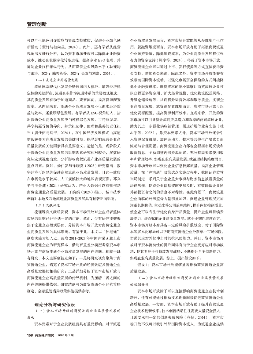 | 资本市场开放对商贸流通企业高质量发展的影响 ——基于“沪港通”交易制度的准自然试验 |