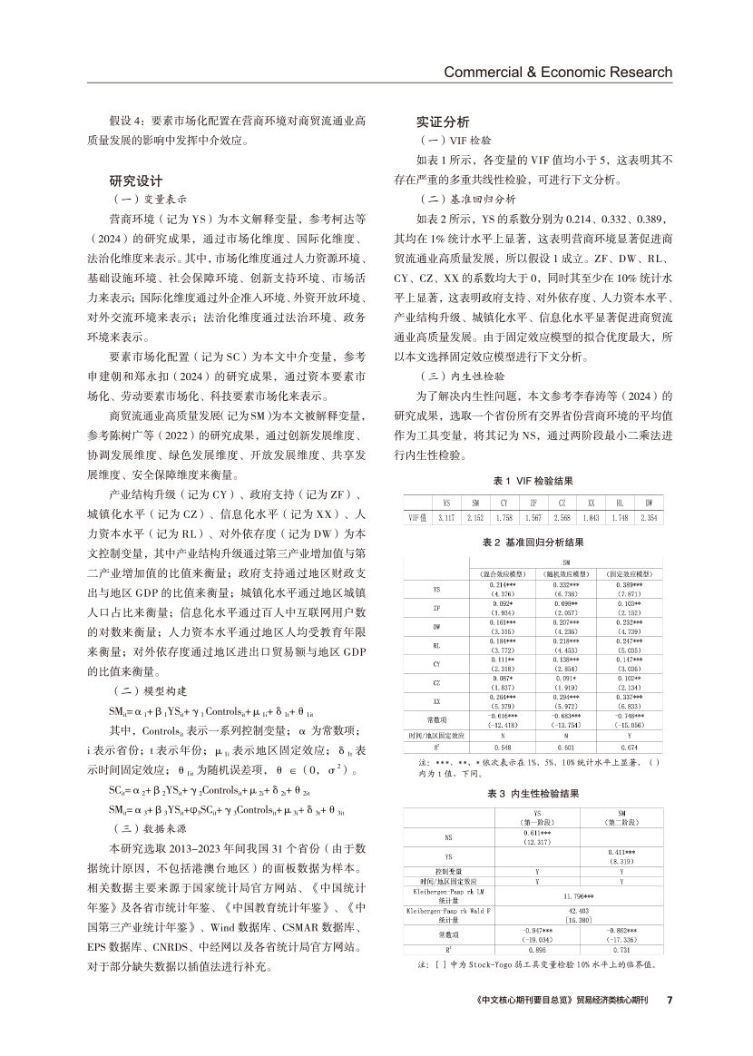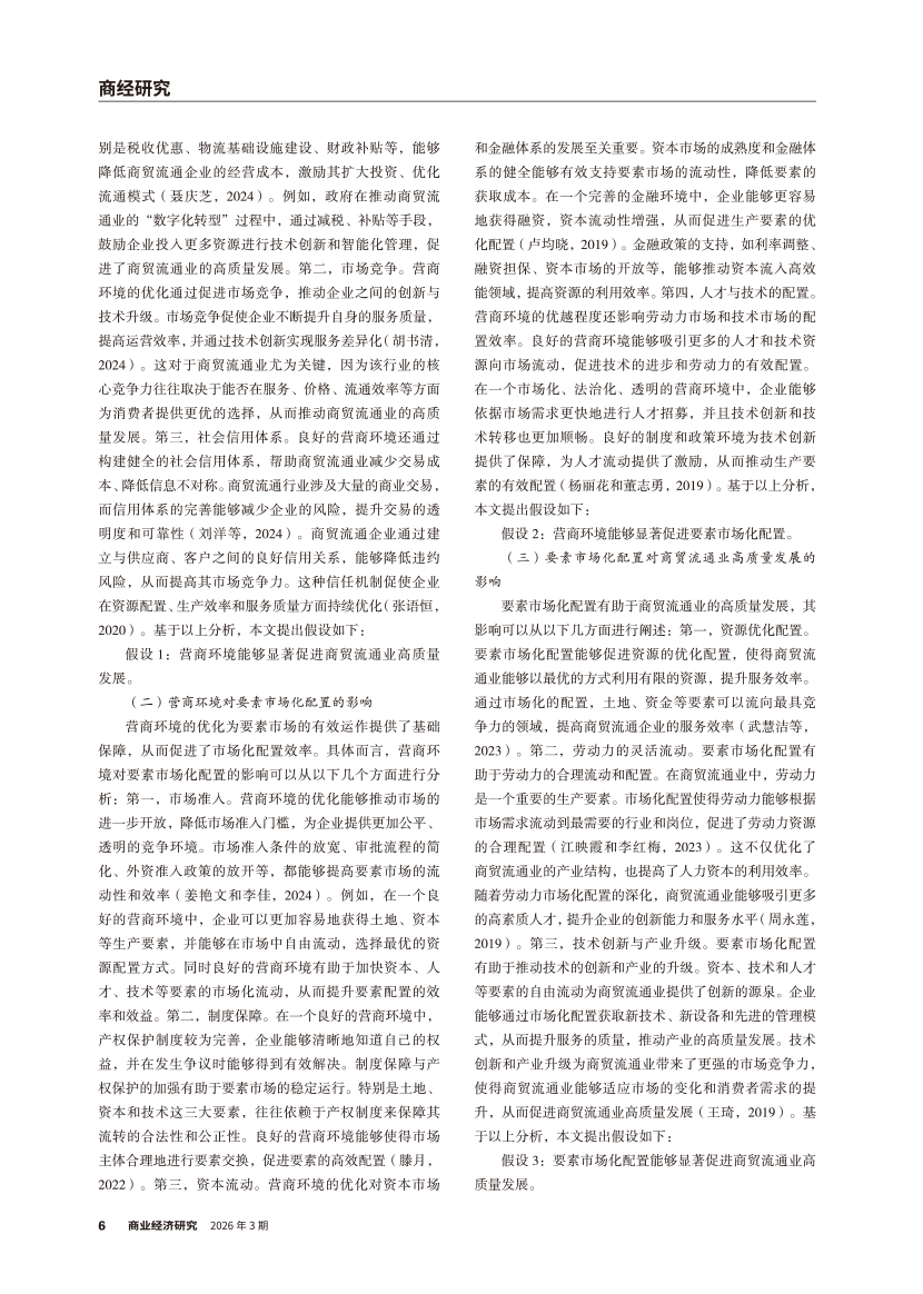 | 营商环境对商贸流通业高质量发展的影响 ——基于要素市场化配置的中介效应 |