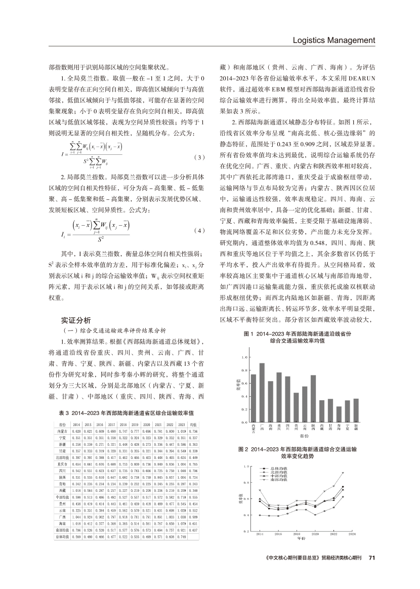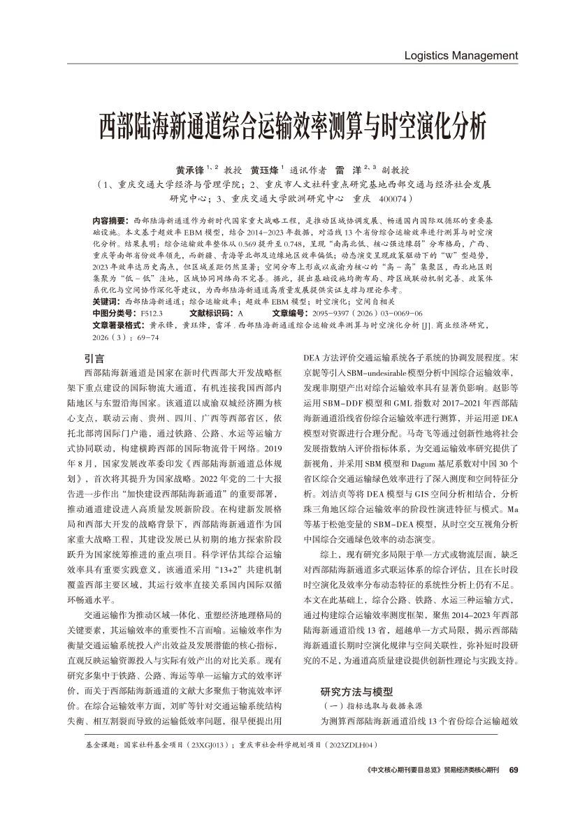 | 西部陆海新通道综合运输效率测算与时空演化分析 |