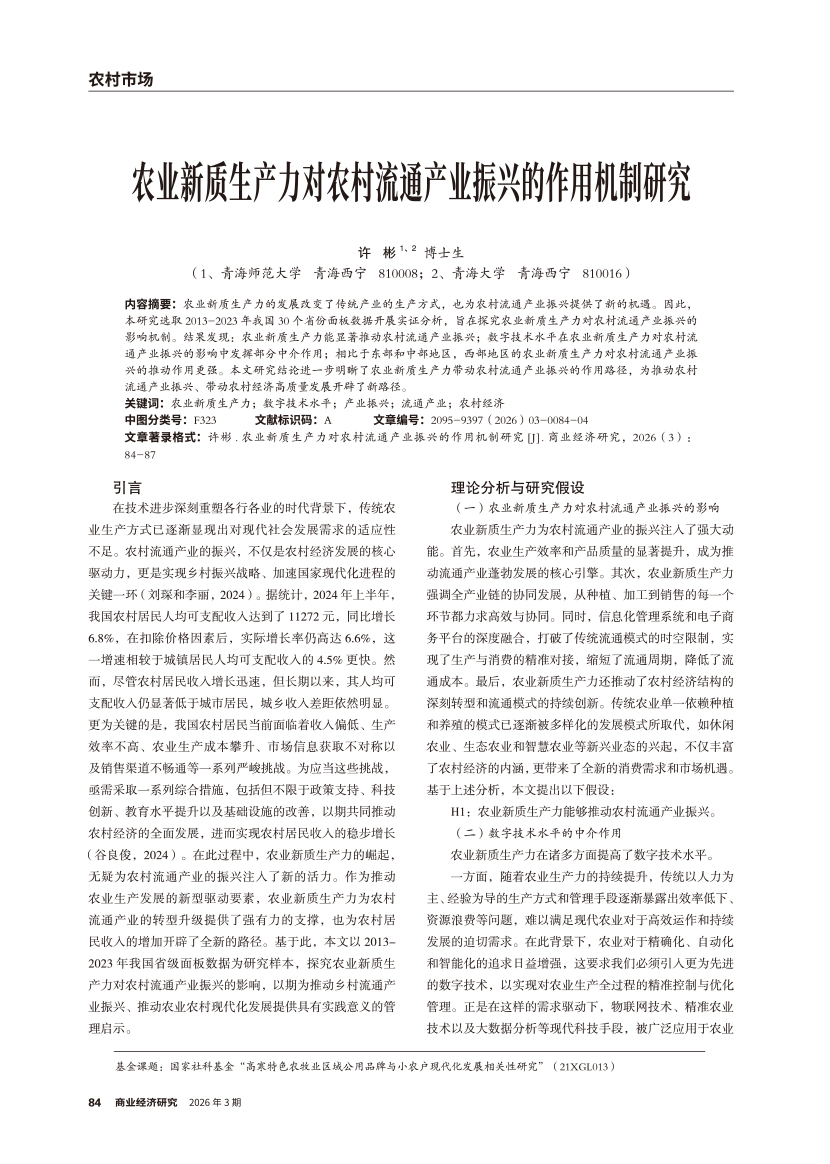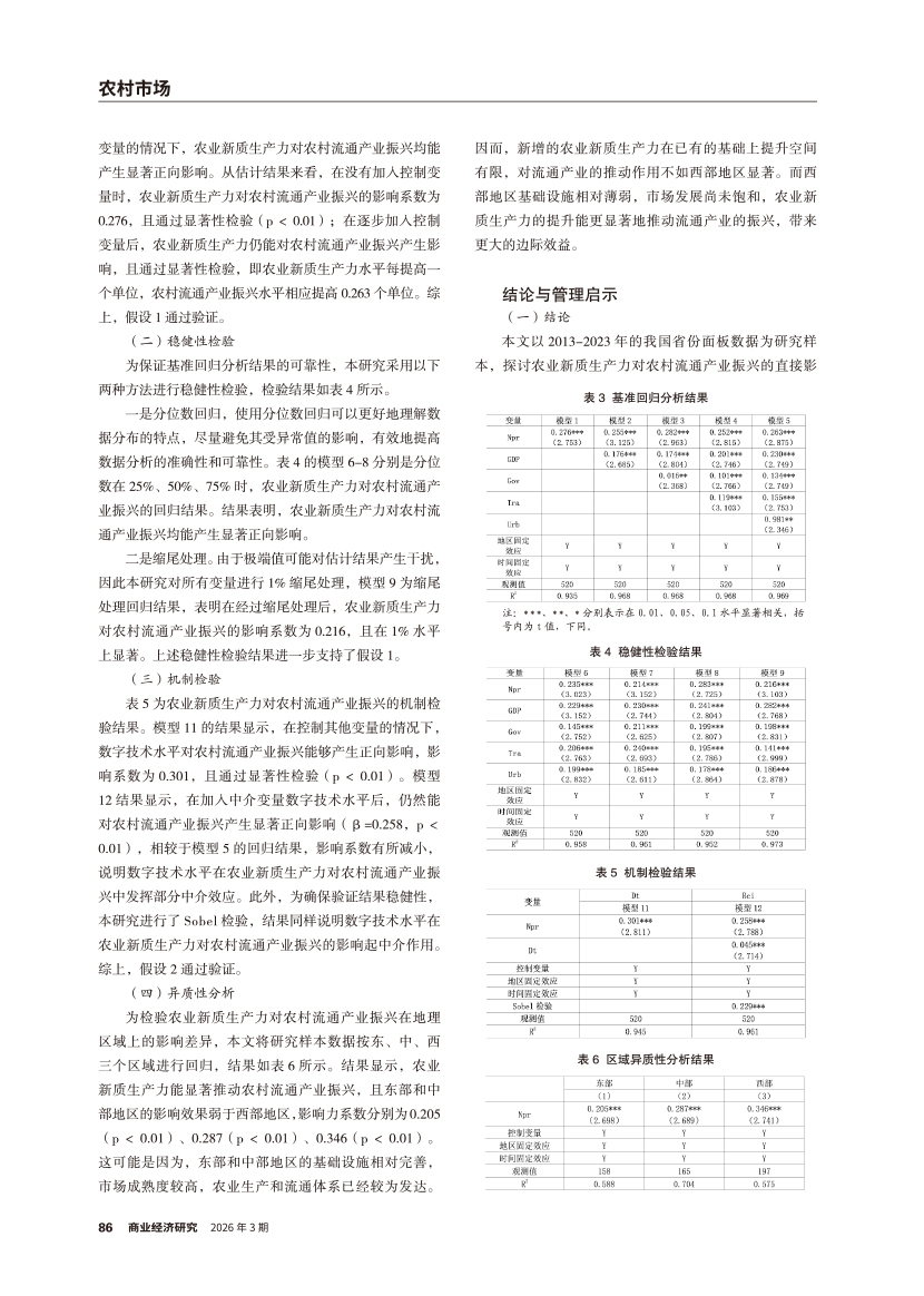 | 农业新质生产力对农村流通产业振兴的作用机制研究 |